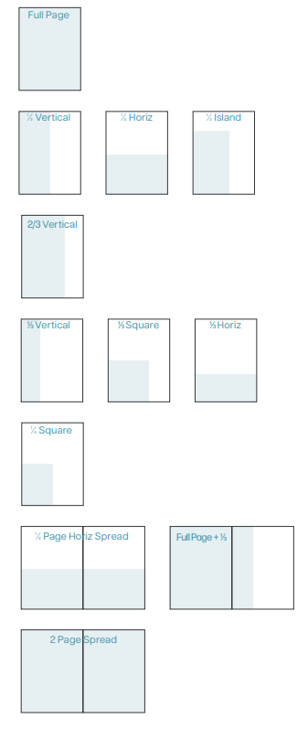 Keep all live items (not intended to trim) 1/4” inside trim edges. If an ad is designed to bleed to the edge, an 1/8” bleed is required outside of trim. Please make sure to output the pdf accordingly to include the bleed, as this is generally not the default setting.